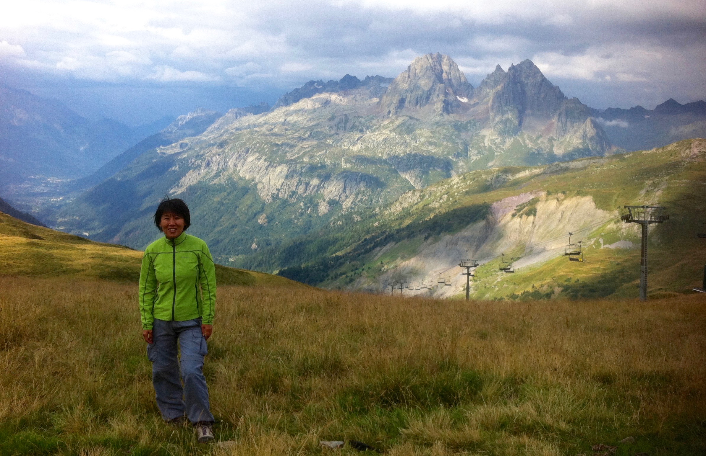The clouds were hanging low in the morning. After having a wonderful breakfast at our pleasant Le Dahu Hotel, we decided to go for the lazy option and take a bus from Argentière to Le Tour and from Le Tour a tele-cabin to Col de Balme. In this way, we will save an almost 1000m uphill climb :- )
