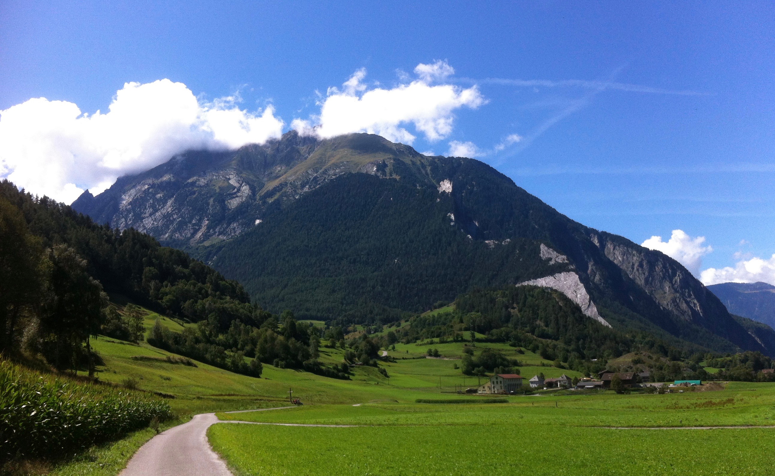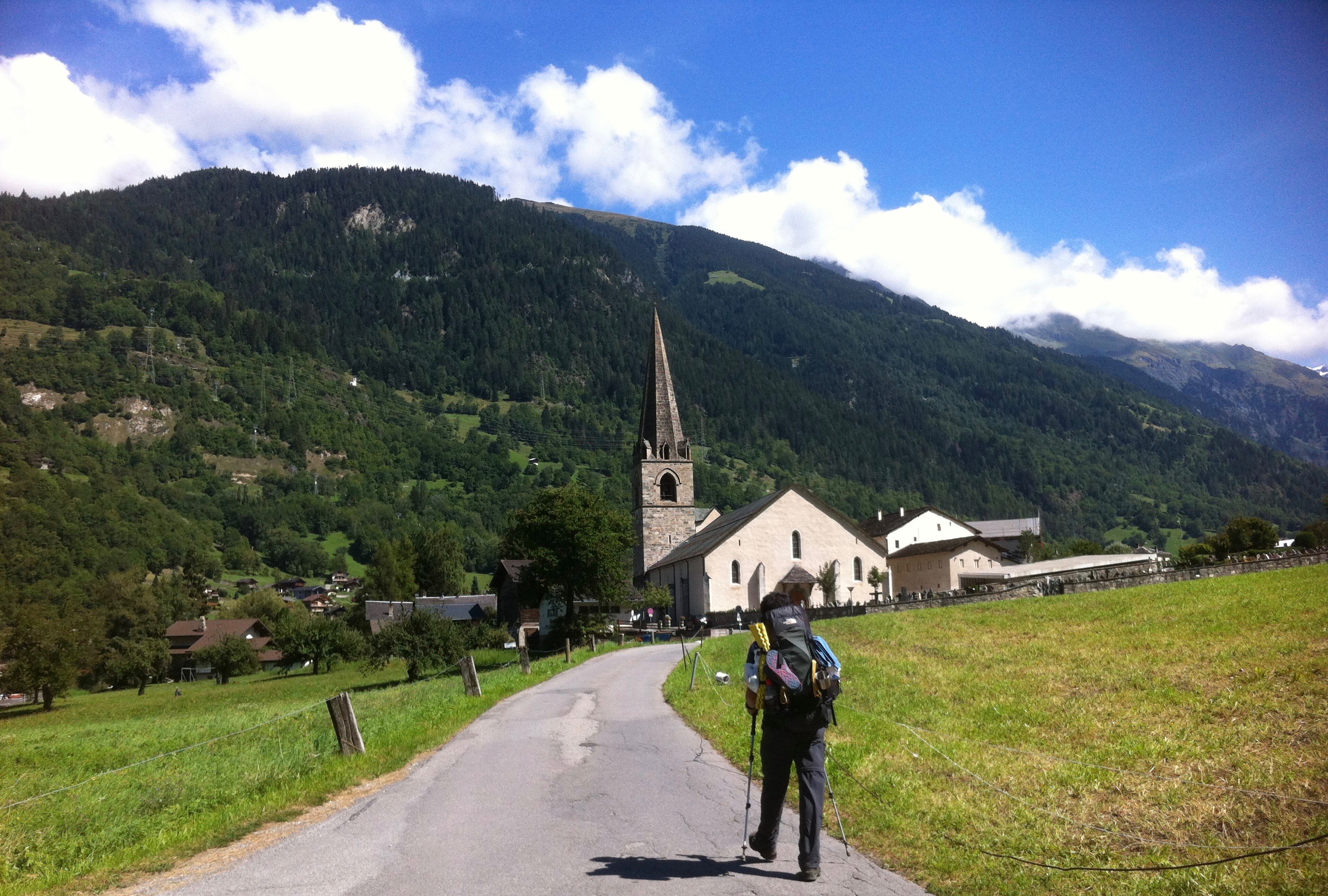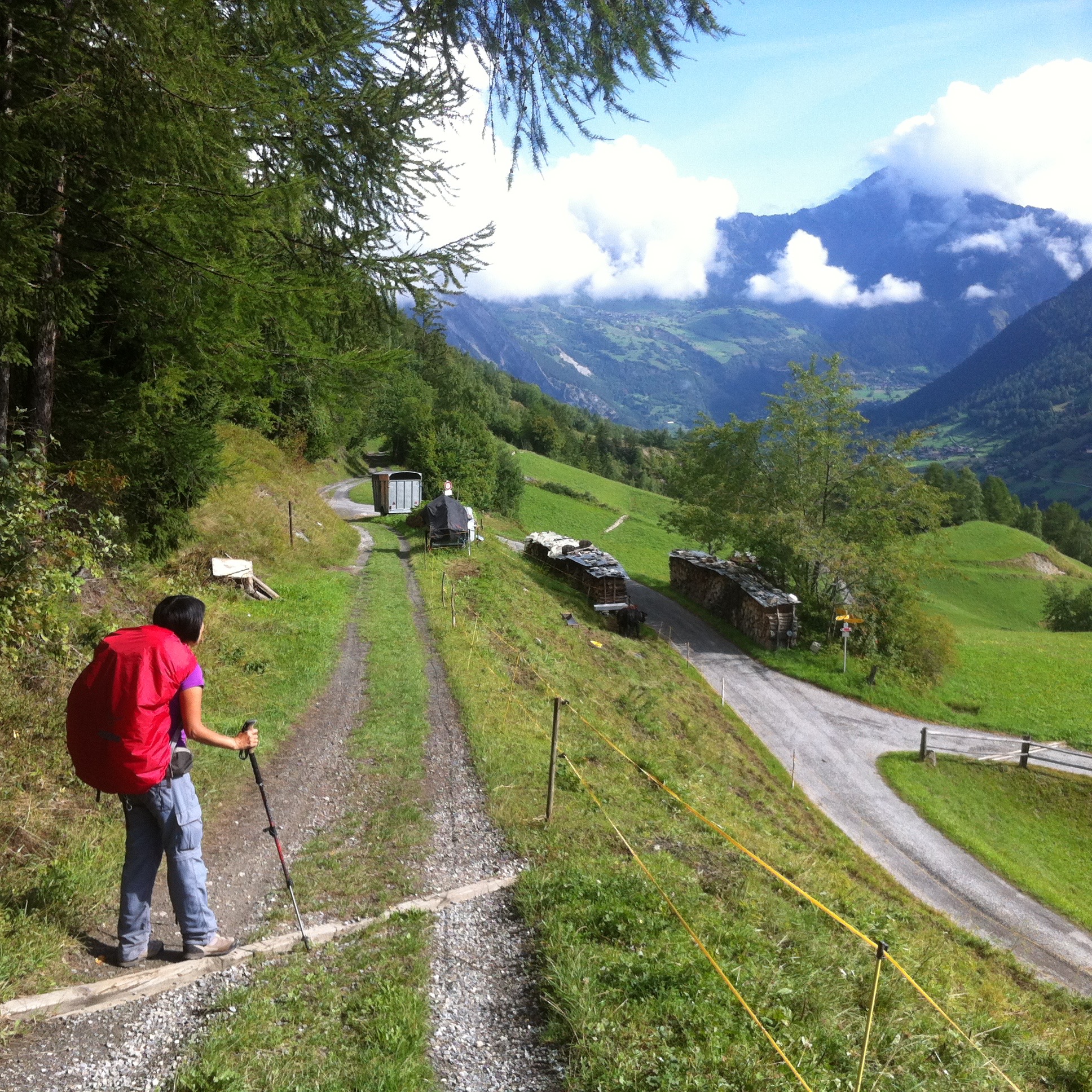 Today is an easy day – downhill only : ) From just behind our cozy Hotel Splendide, we started going down the valley, the Val d’Entremont, passing small farming villages and the vividly green pastureland. Nothing but peaceful Swiss countryside.