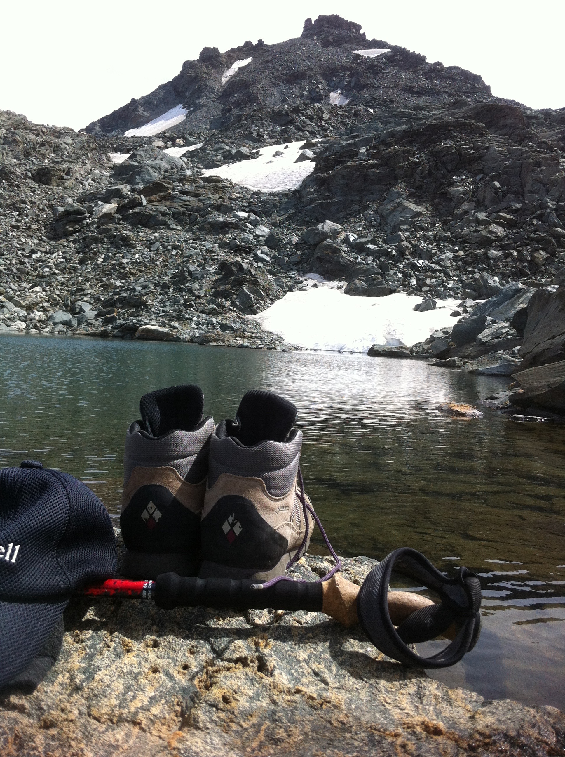As soon as I saw a small glacier pond, I could not resist the temptation to take off my shoes and socks, and soak my tired feet in the cold water. Refreshing but so cold that I could not keep them under the water more than a few seconds! Karen and John from the Starbucks team joined me in soaking their feet for more than a minute. Different breed – or may be their feet were just about to fall off.
