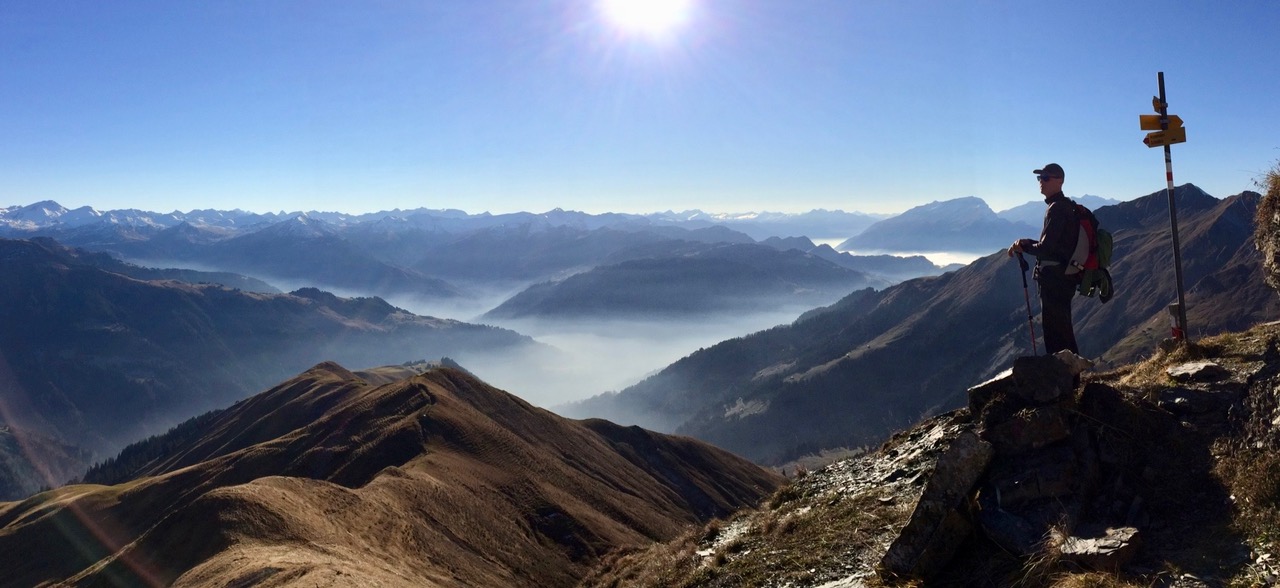 A forlorn yet fantastic 6-hour trail from the foot of Sassauna to Fadurer Fürggli to Schuders. In mid-November we enjoyed the unusually sunny weather, witnessing the dramatic fog streaming into the Prättigau Valley like a waterfall.What an amazing natural phenomenon!