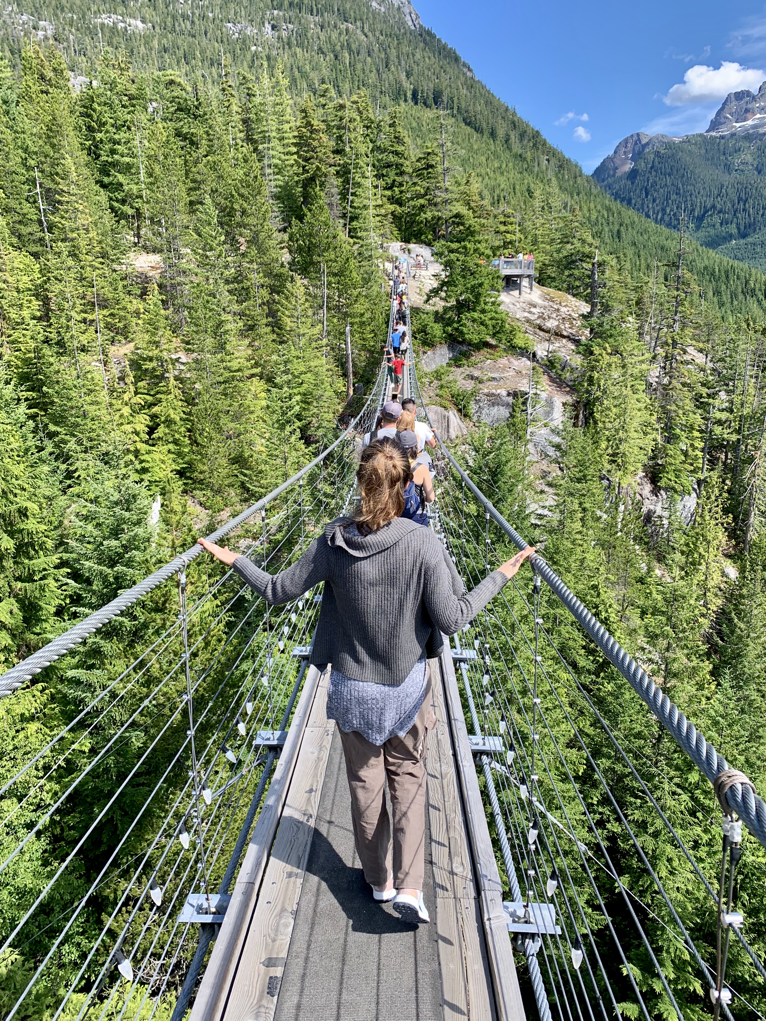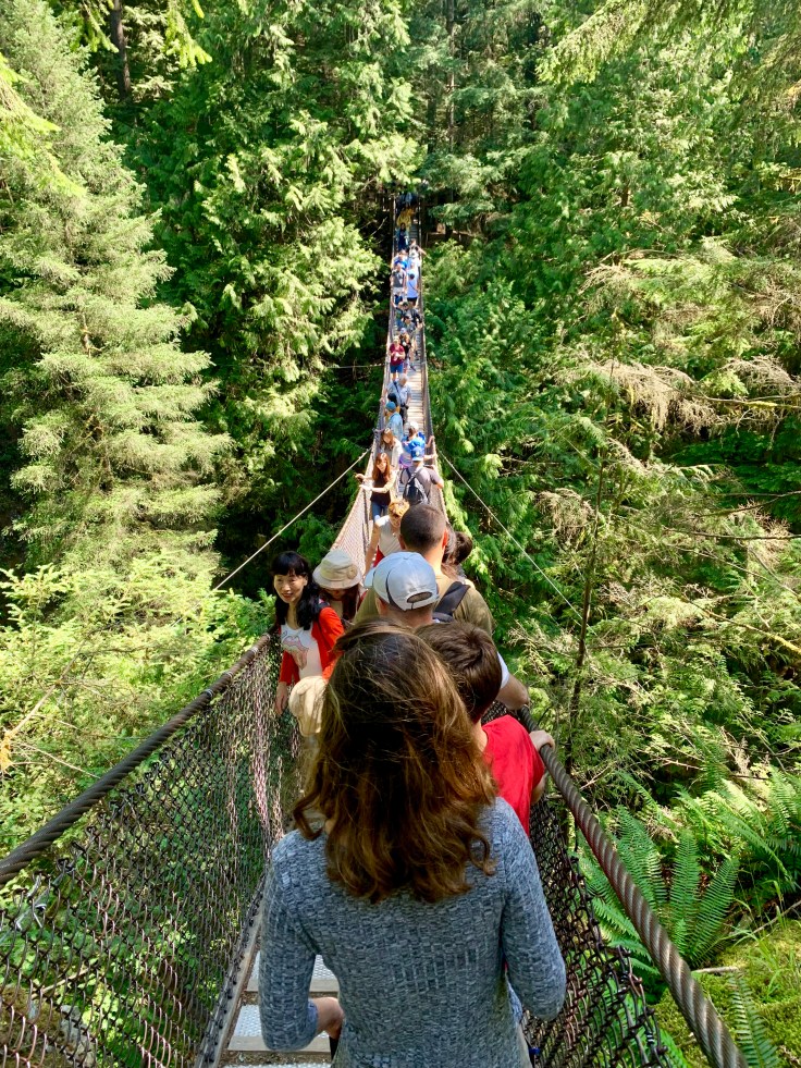 Lynn Canyon, where we headed afterward was a rather crowded but beautiful dense pine forest with a suspension bridge. After queueing to cross the bridge, we had a nice 30 minutes hike together with our Rumanian guide Gabriel.