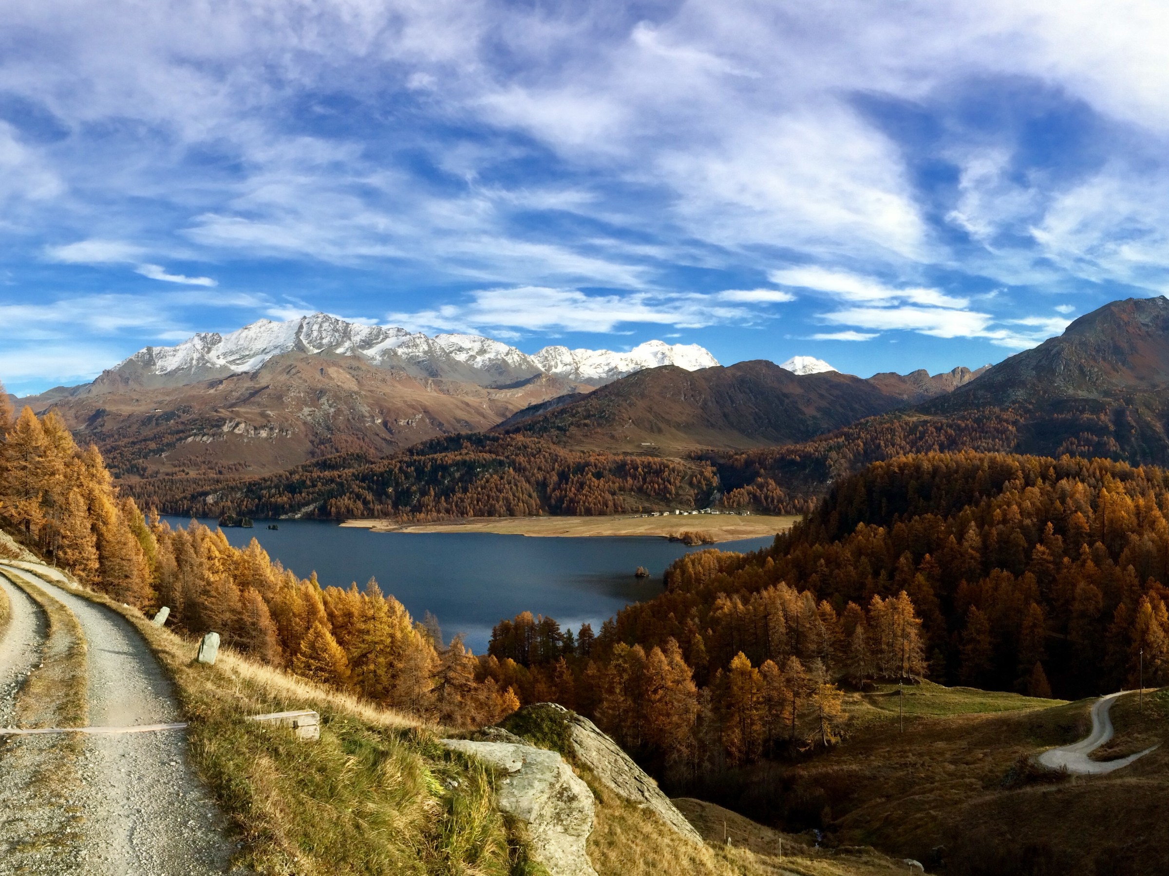 The downhill path to Silsersee was extremely steep and rather intimidating, but the panorama towards the lake and the mountains was breathtaking! It was a very special autumn hike.