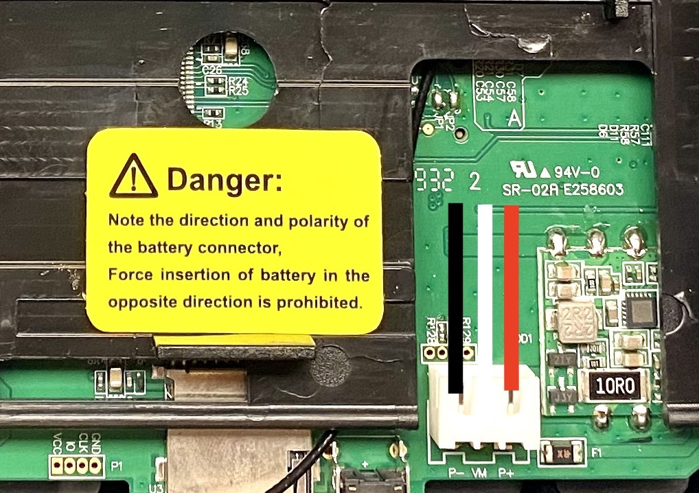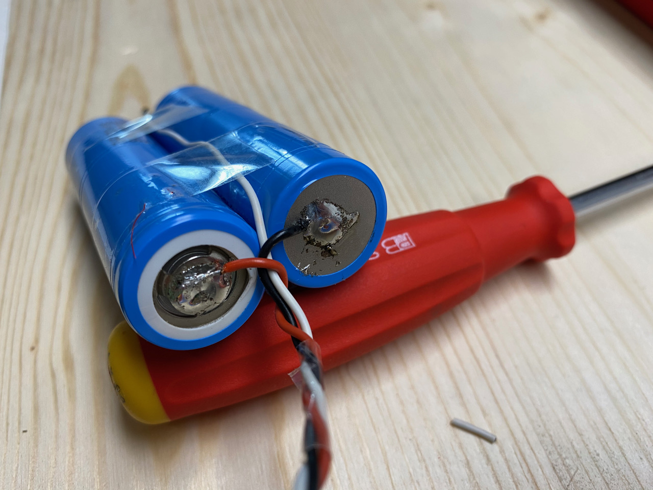 The new battery pack must be soldered in the manner shown in the following diagram. The white cable in the diagram is for balancing. Cover the battery pack with tape or a shrinking tube.