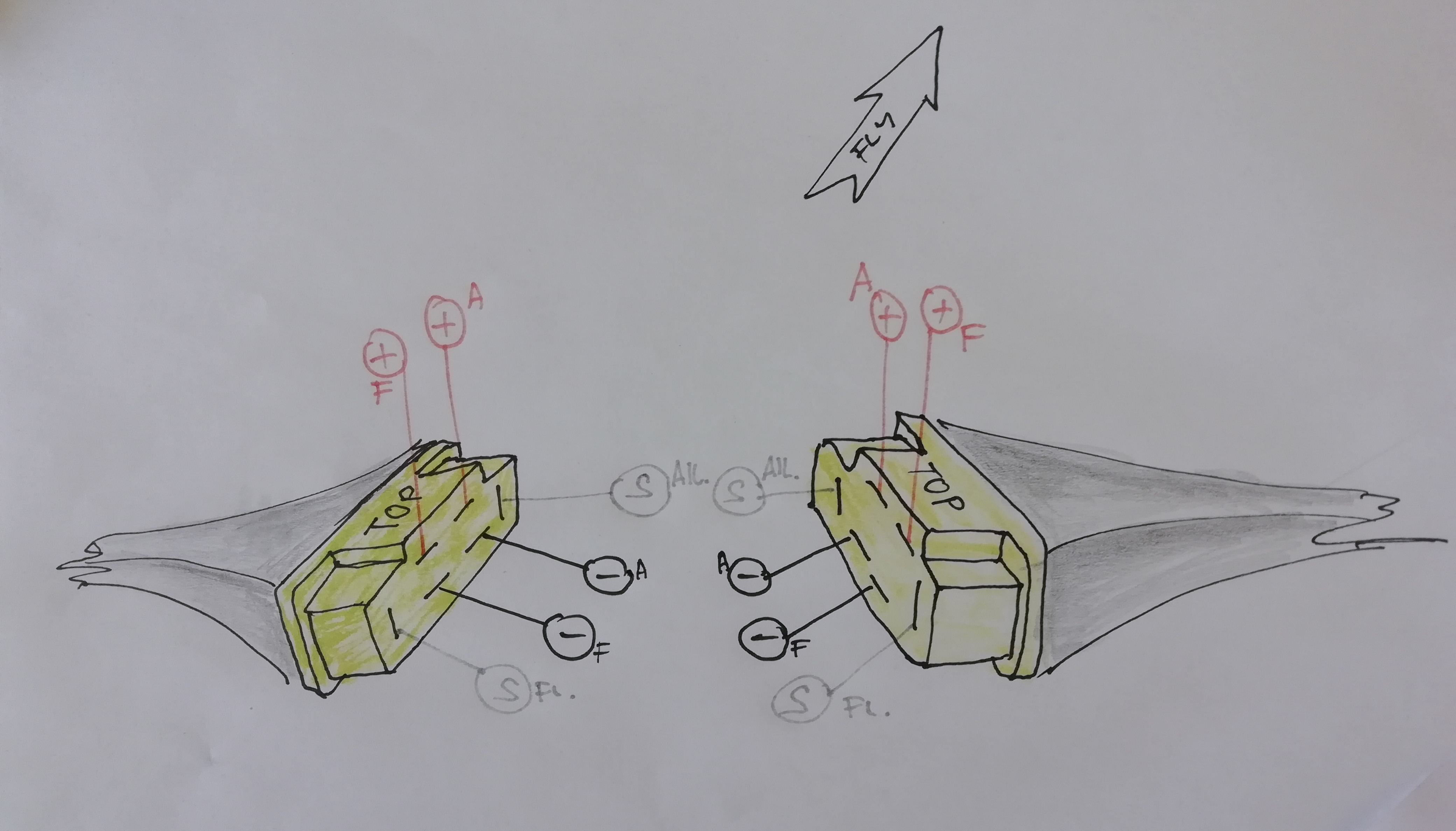 Let’s start with the plugs for the outer two control surfaces, (aileron and outer flap). The drawing is made by Baudis. If you had the plane built by Baudis, the plug configuration is likely the same: