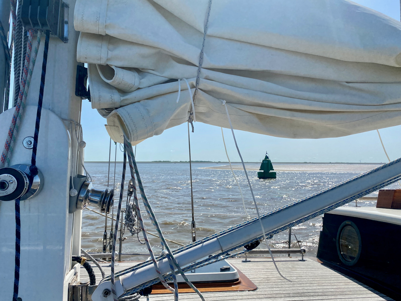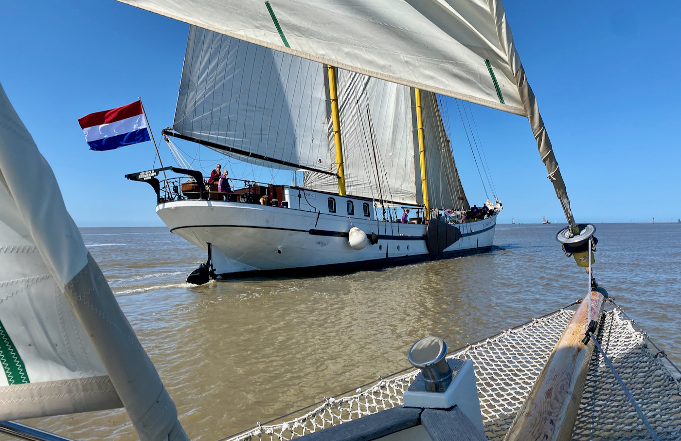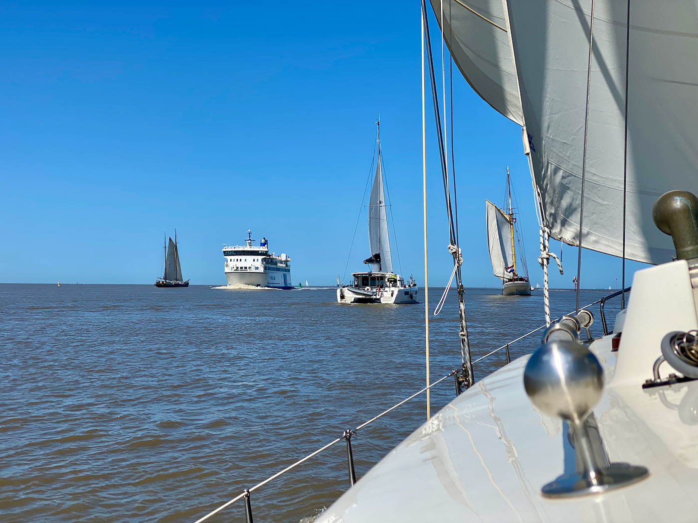 Special care is needed at the “Pollendam”, because the fairway (a navigable part of a bay or harbour) becomes very narrow here. And also because there is a lot – I mean a lot – of maritime traffic. If we make the best possible use of the tidal current from now on, we will make good time in the fairway “Blauwe Slenk” towards Vlieland where we spend another quiet night before 3 days at sea.
