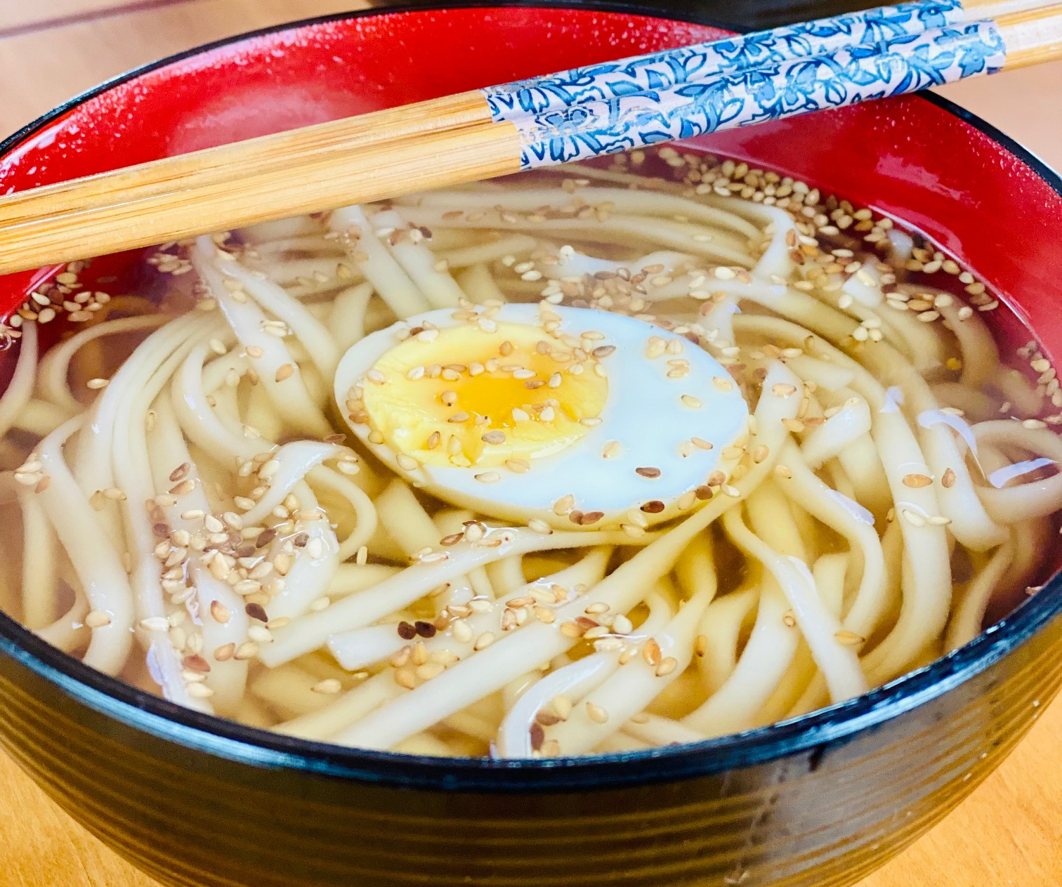 In the morning, we felt tired and hung over, like after a bad bottles of wine. So we had a hangover breakfast. Udon, a Japanese noodle soup in a tasty broth. One of my favorite dishes, hung over, or not …
