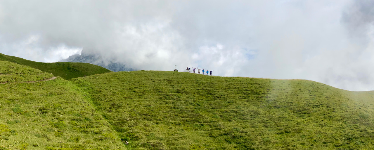 Silvia also joined our scenic bus ride up to 2000 m altitude but then took the bus back down. The rest of the family started to walk. The weather was not as sunny as forecasted, but the clouds and the mist made the scenery look dramatic.