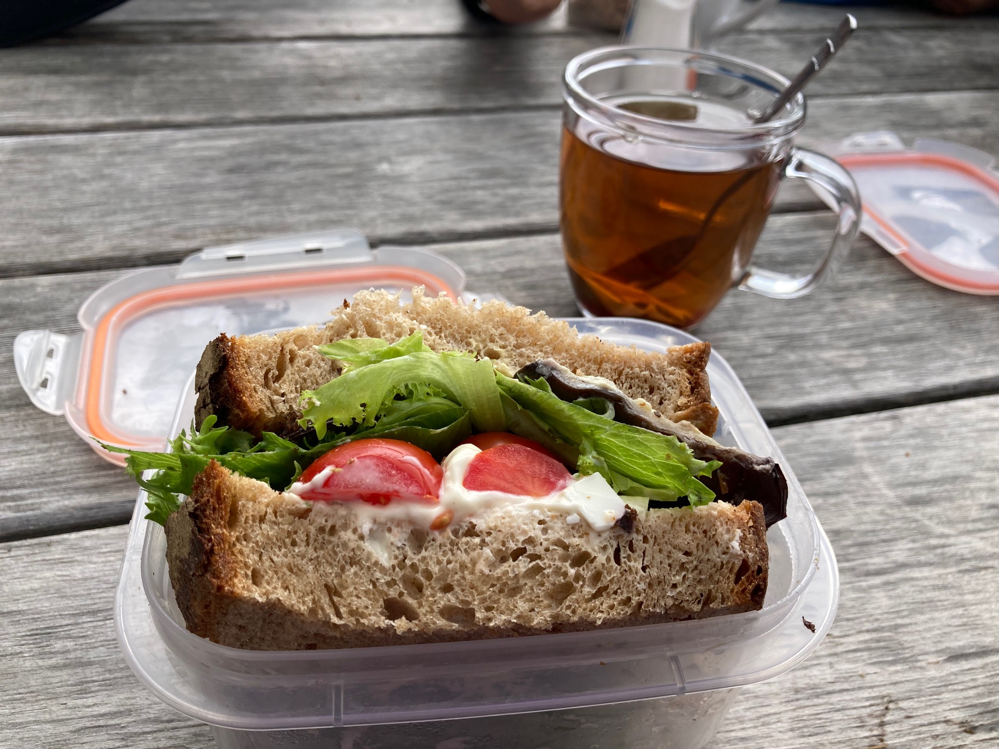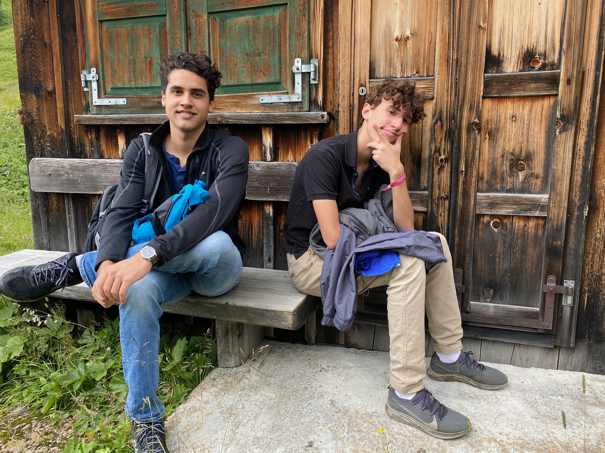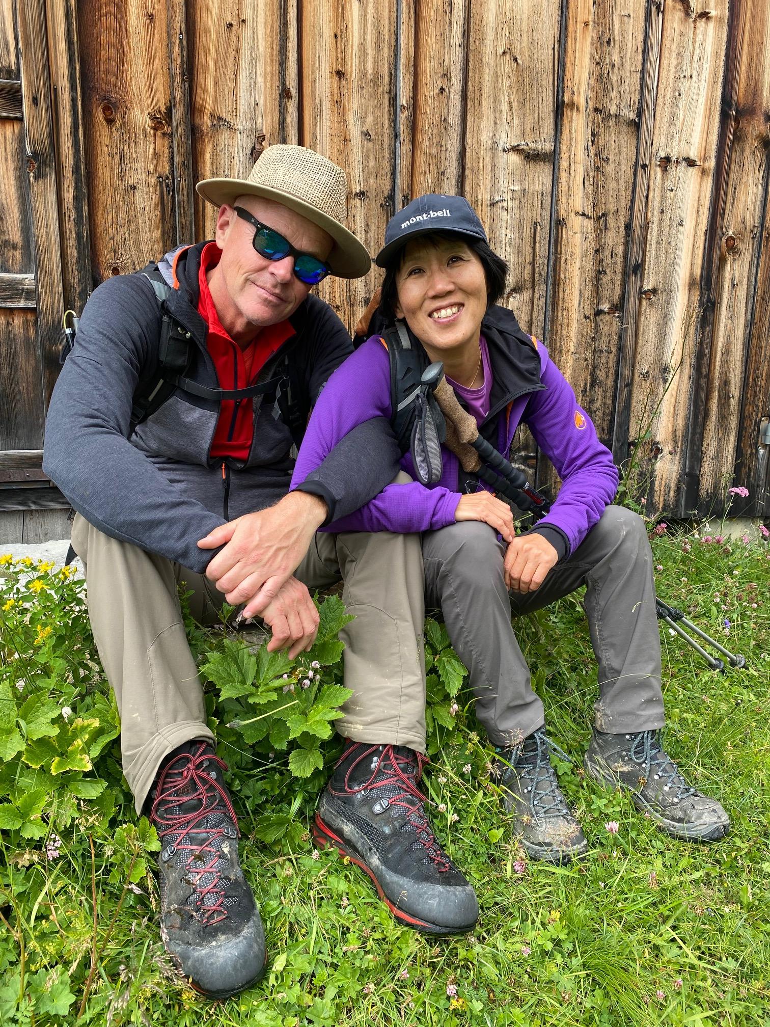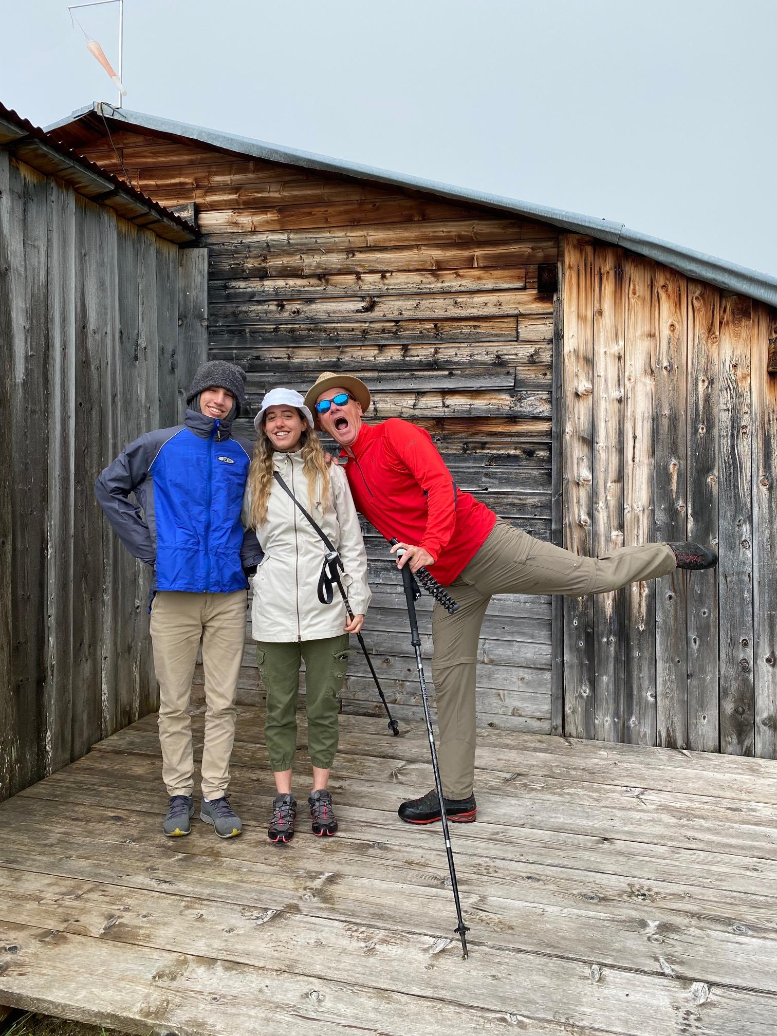 Lunch break at the Carschina Hut, with our home-made sandwiches.