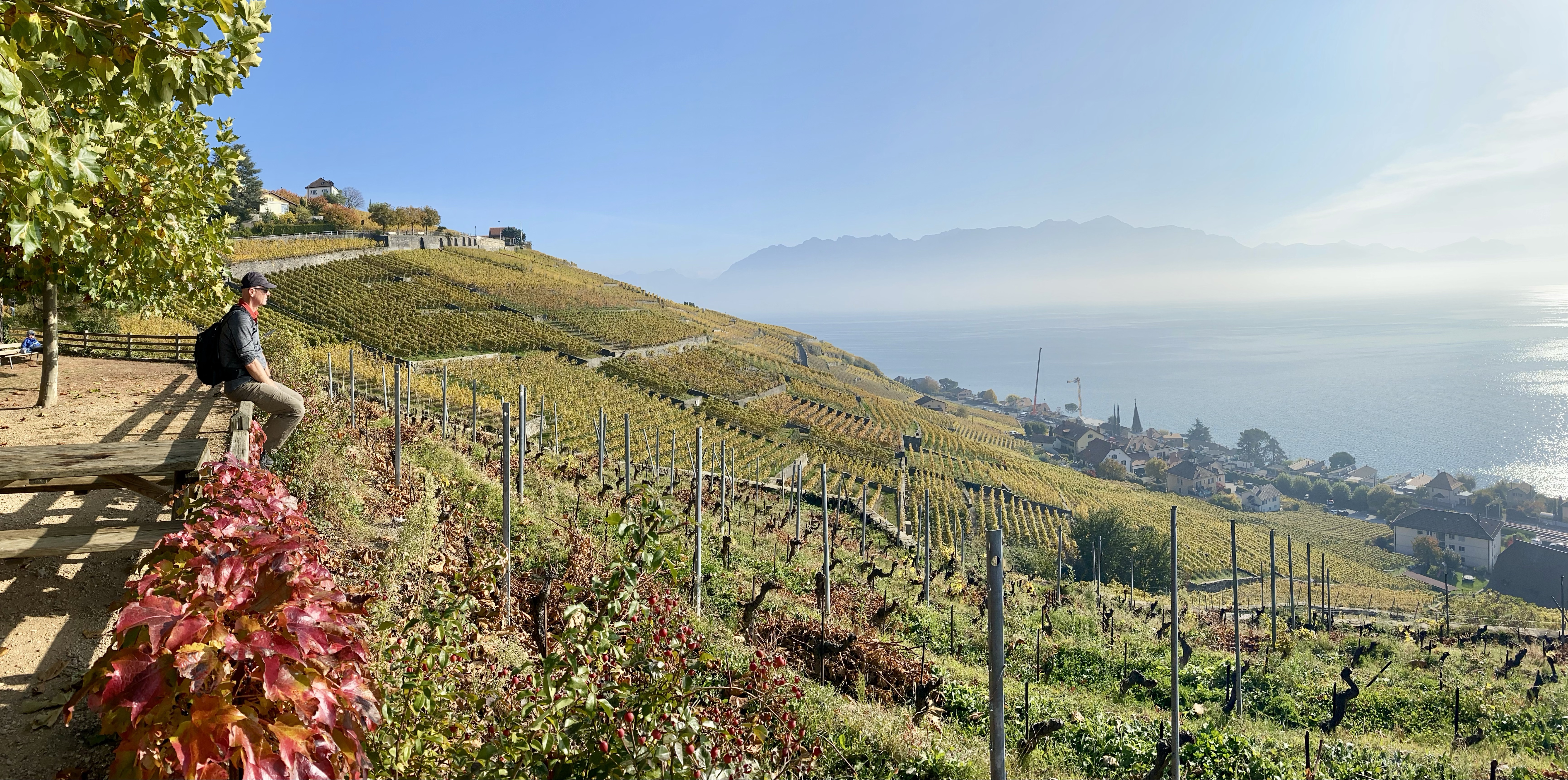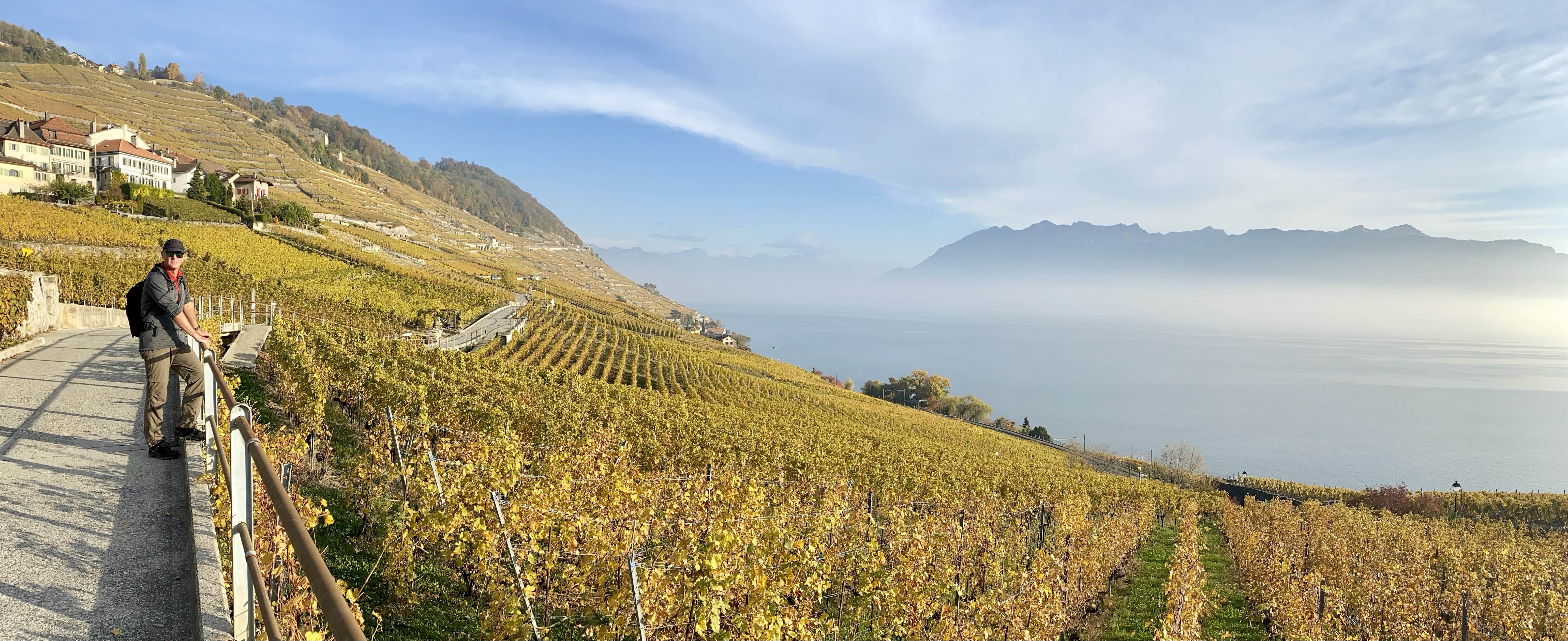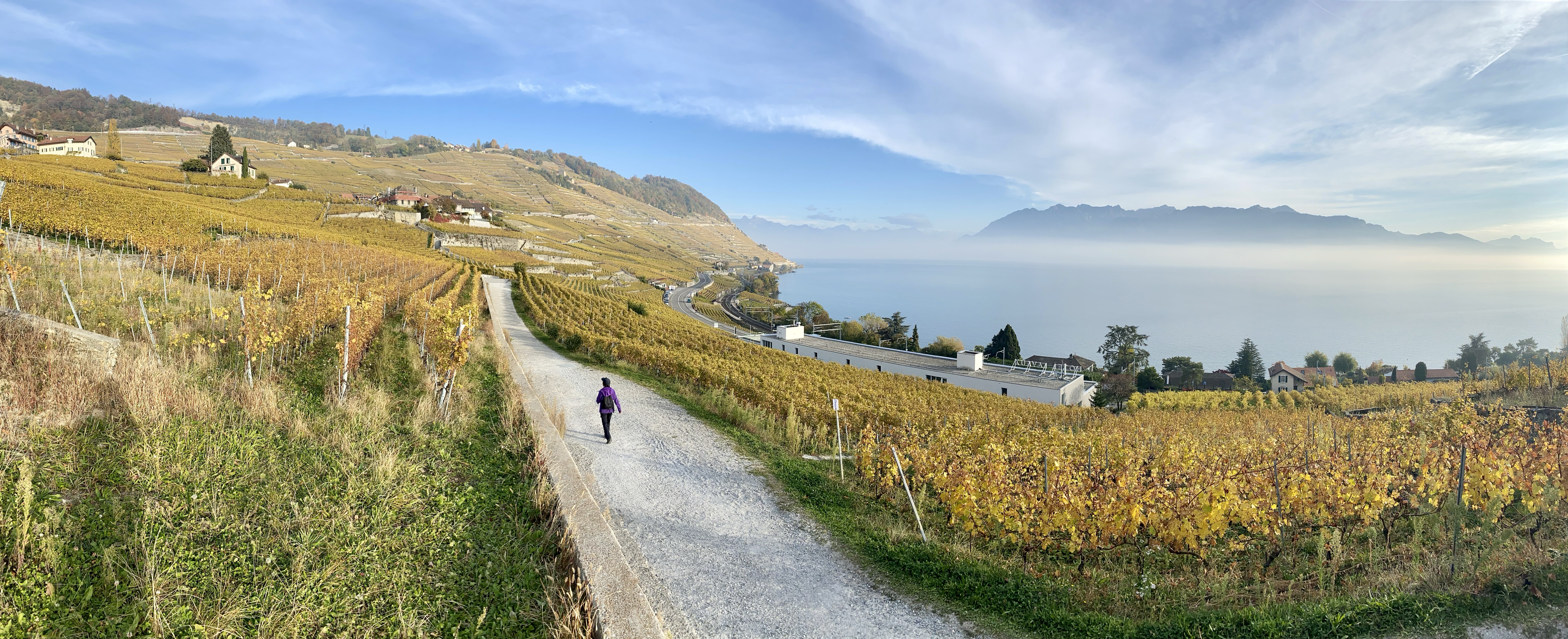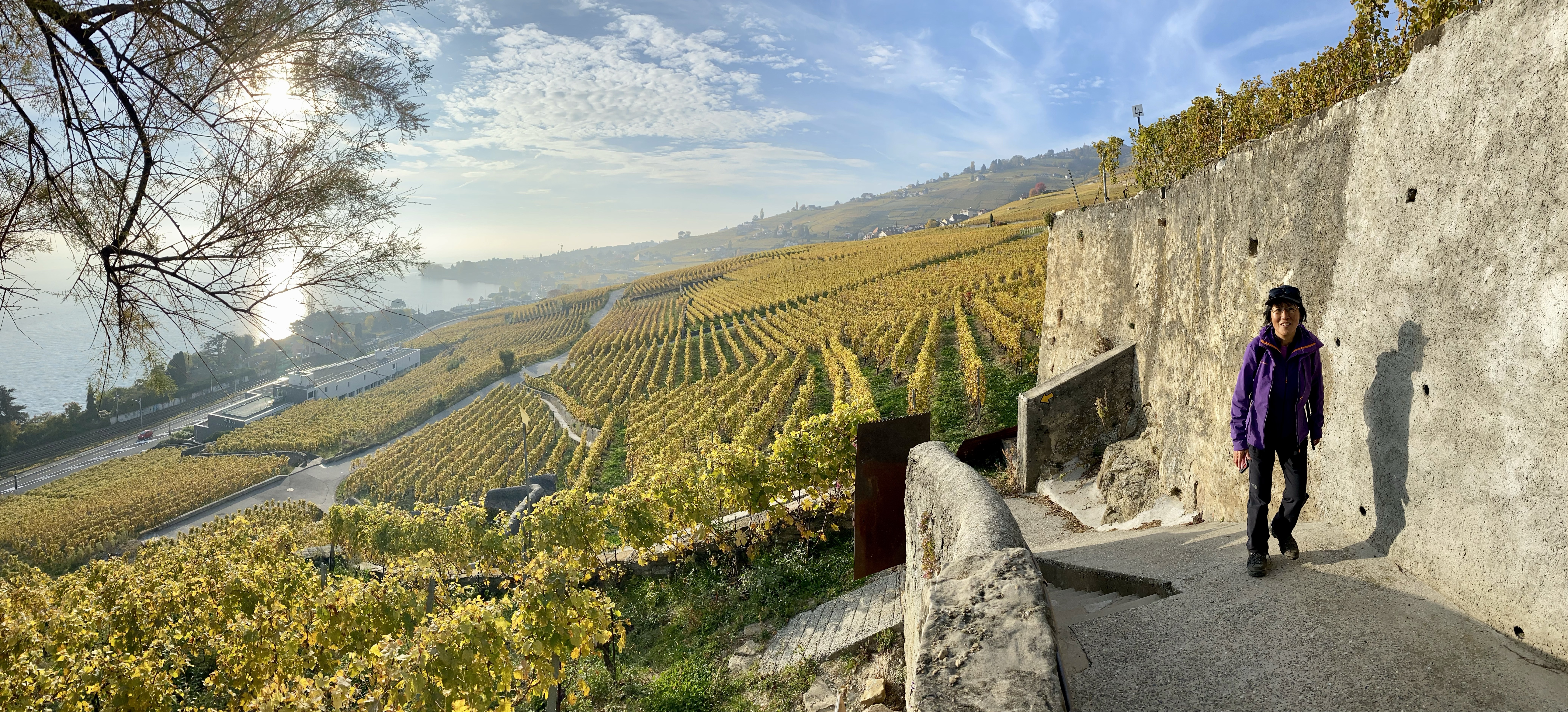 The purpose of this trip was to see our nephew, who has started his study at EPFL this autumn. But, of course, Yasuko will never miss an opportunity to combine anything with a walk, so we tightened our hiking shoes and started to follow the famous “Route de Vignoble”. While living here, we walked and biked this area numerous times. The vineyards are of stunning beauty.