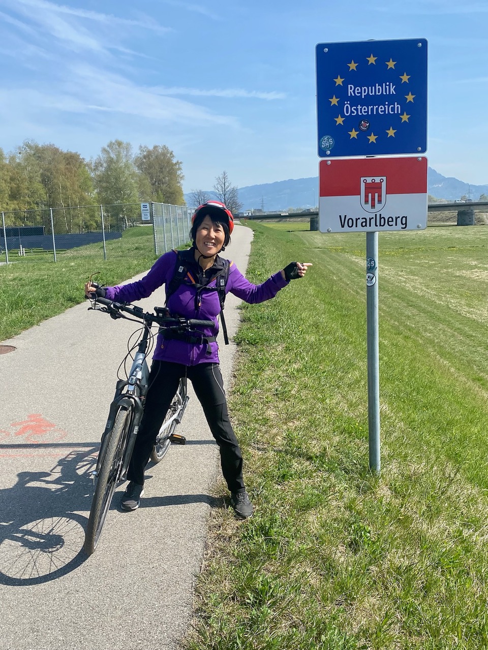 Today we started from St. Margrethen, a Swiss border town, and cycled peacefully along the River Rhein. Within half an hour we saw a border sign saying that we were about to cross over to Austria. For me, a Japanese who was born on an island, it still feels strange to cross countries so easily, even after a couple of decades of living abroad.
