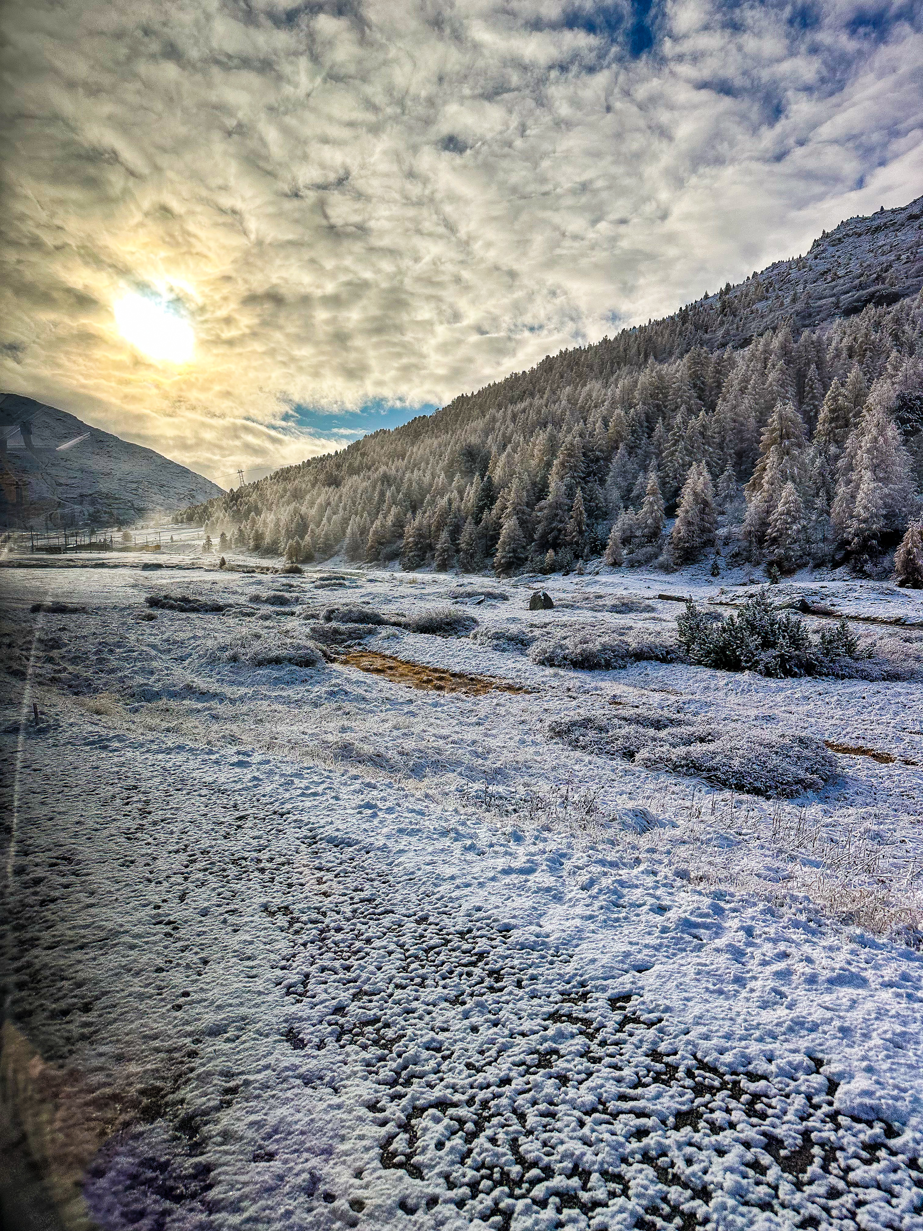 A view from the bus at around 2000m of altitutde on the Bernina Pass. The winter is getting ready.