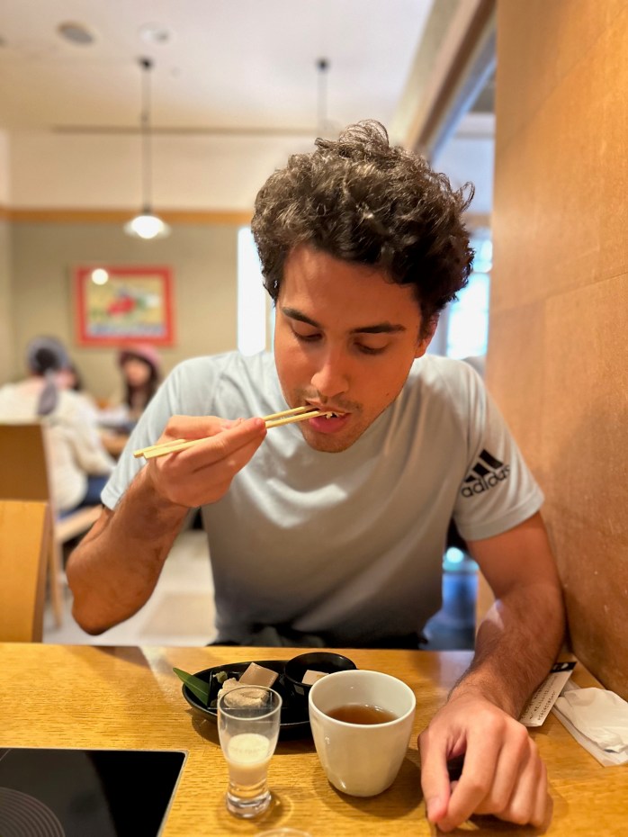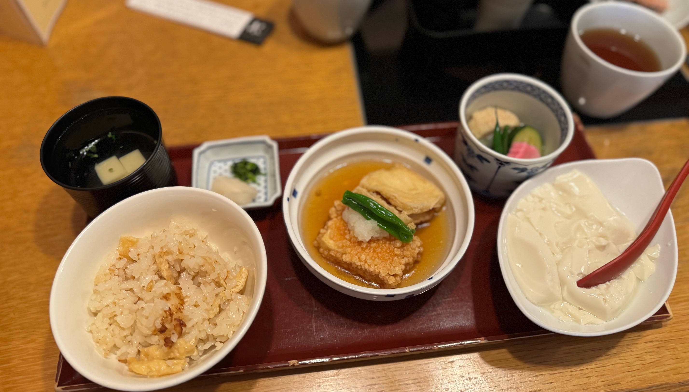 I think we were all eagerly anticipating the culinary experiences in Japan. Having visited Japan numerous times, I’ve always found food to be an essential part of the journey. This visit was no different. We chose a renowned tofu restaurant at the top of Kyoto Station, waited in line for a while, and enjoyed another fantastic—and for Luca, probably a bit surprising—tofu-only meal. It’s in moments like these that I regret how little the Western world appreciates the versatility and potential of tofu.