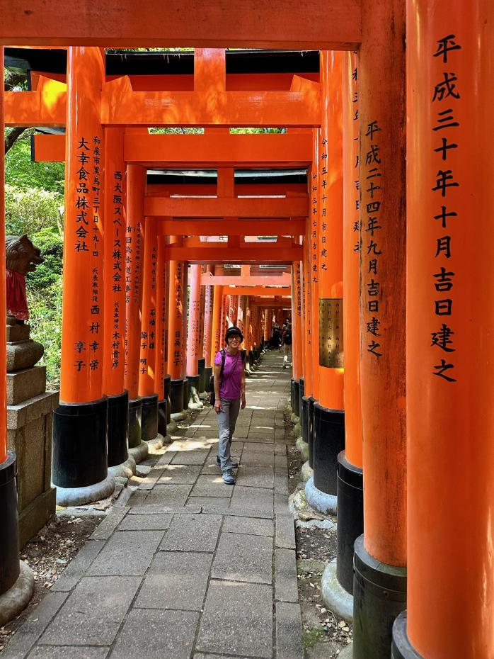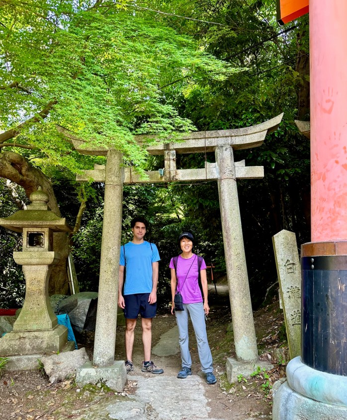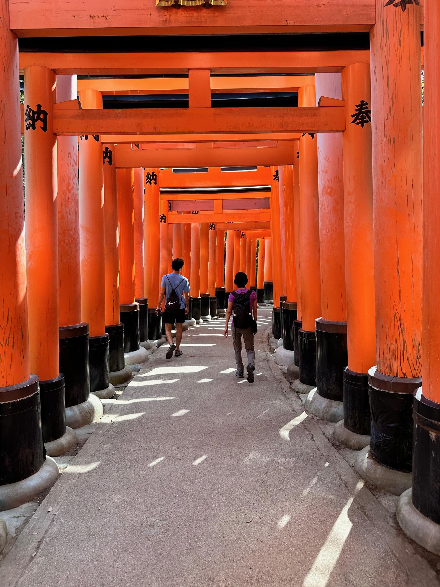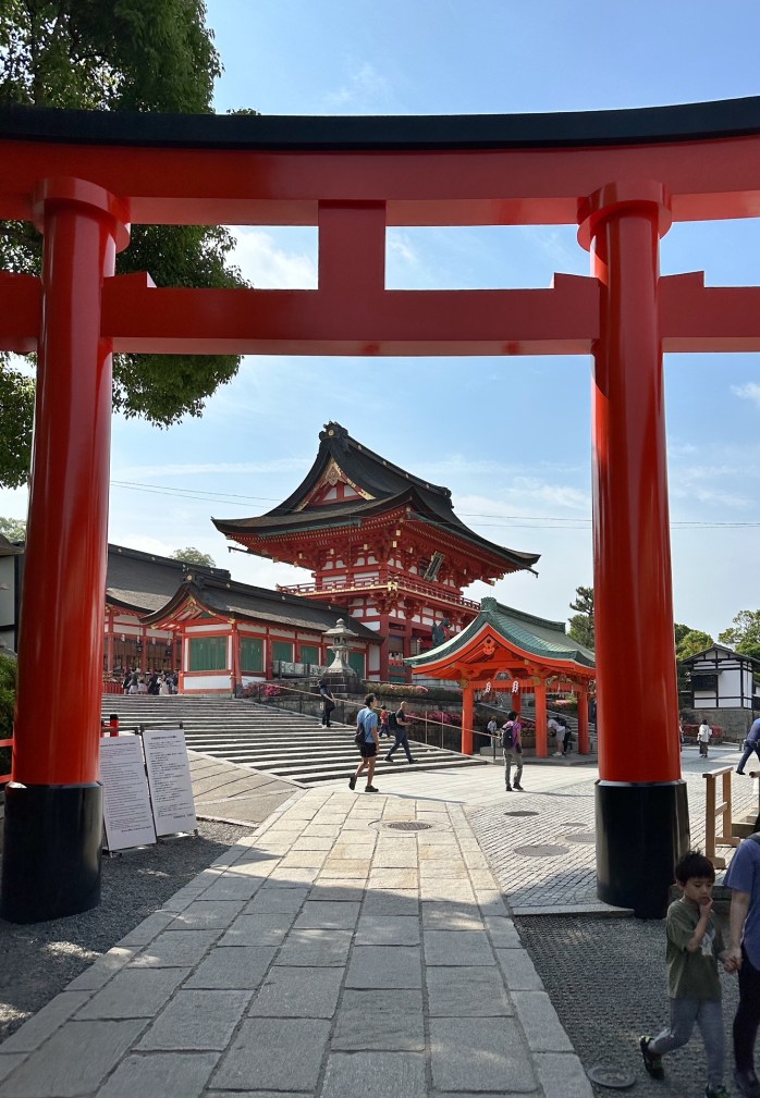 Today, our trio decided to visit the Fushimi Inari Shrine in Kyoto. It is one of the most iconic Shinto shrines in the country. The shrine is renowned for its thousands of vibrant red torii gates, which form picturesque tunnels along the paths leading up Mount Inari. These gates, donated by individuals and businesses, symbolize wishes for prosperity and success. We started quite early in the morning to avoid the crowds and embarked on the scenic hike through the torii-lined trails to explore the smaller shrines and enjoy panoramic views of Kyoto.