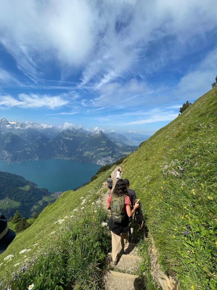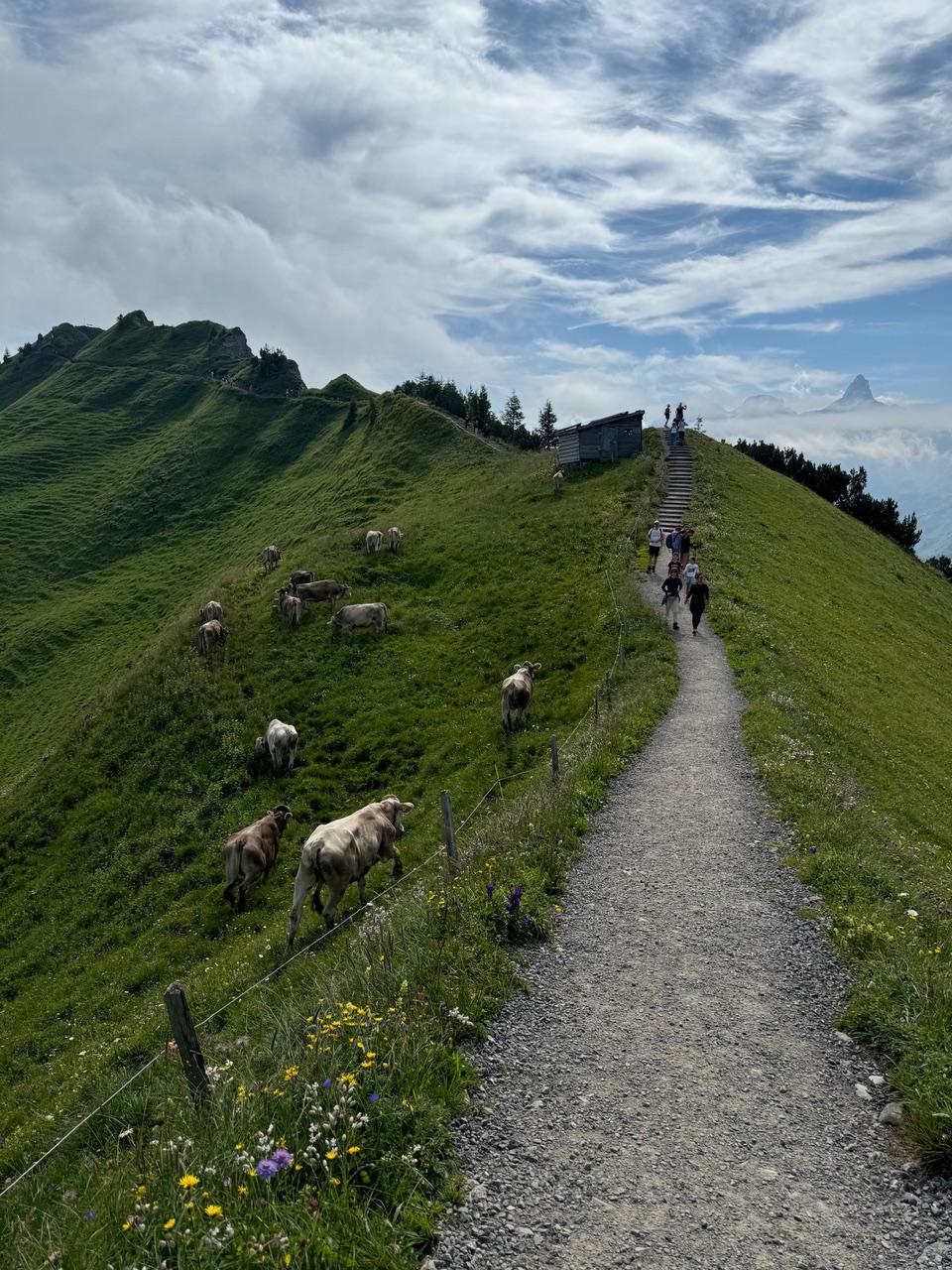 To reach our starting point at Klingenstock, we took the steepest cable car in Europe up to Stoos, followed by a picturesque chairlift ride that whisked us to the trailhead. From there, we began the two-hour ridge hike to Fronalpstock, where every step rewarded us with ever more breathtaking views of the surrounding landscapes.