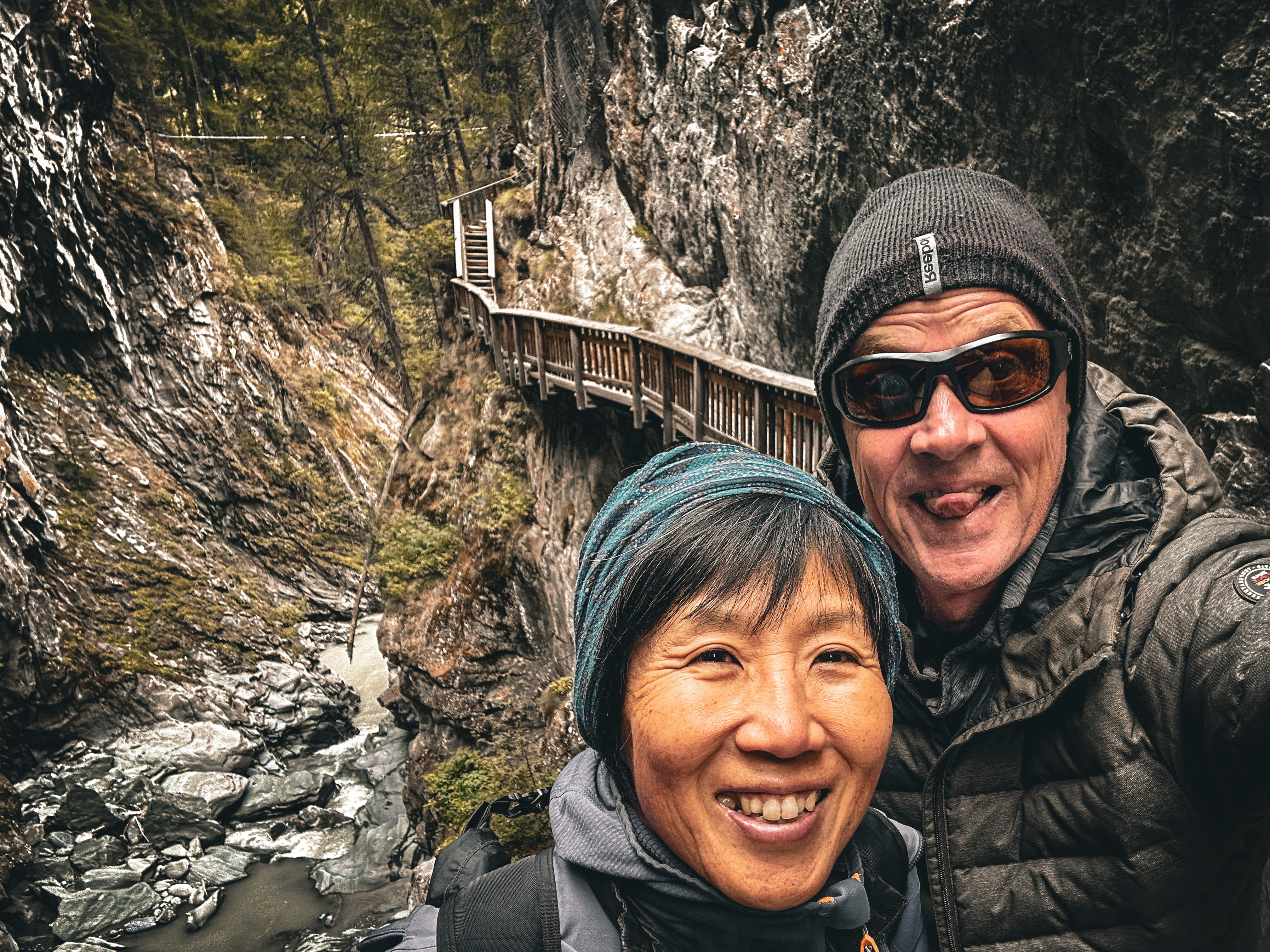 Upon arriving in Zermatt, we embarked on a brief yet invigorating stroll through the Gorner Gorge. This picturesque locale holds a special place in our hearts, having been a cherished destination for years during visits with my Japanese family. Despite our frequent returns, the dramatic landscape and raw beauty of the gorge continue to captivate us. The thundering waters and towering cliffs never fail to leave us in awe.