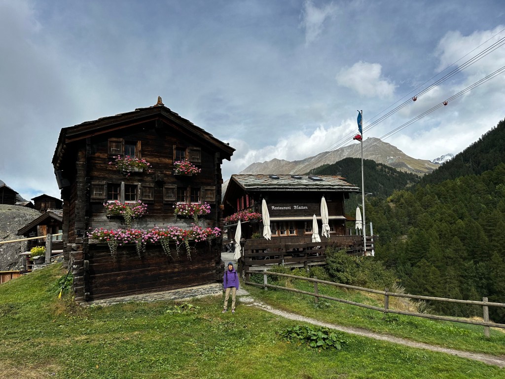 On our way back, we stopped at the charming Blatten restaurant, a delightful little hideaway nestled in the mountains. There, we indulged in a slice of delicious apricot cake and a pot of hot tea—a perfect reward after our walk. As we lingered, we found ourselves in a captivating conversation with the restaurant’s owner, who offered thoughtful insights into the rhythms of tourism in Zermatt. His stories gave us a deeper appreciation for how this picturesque town has transformed over the years.