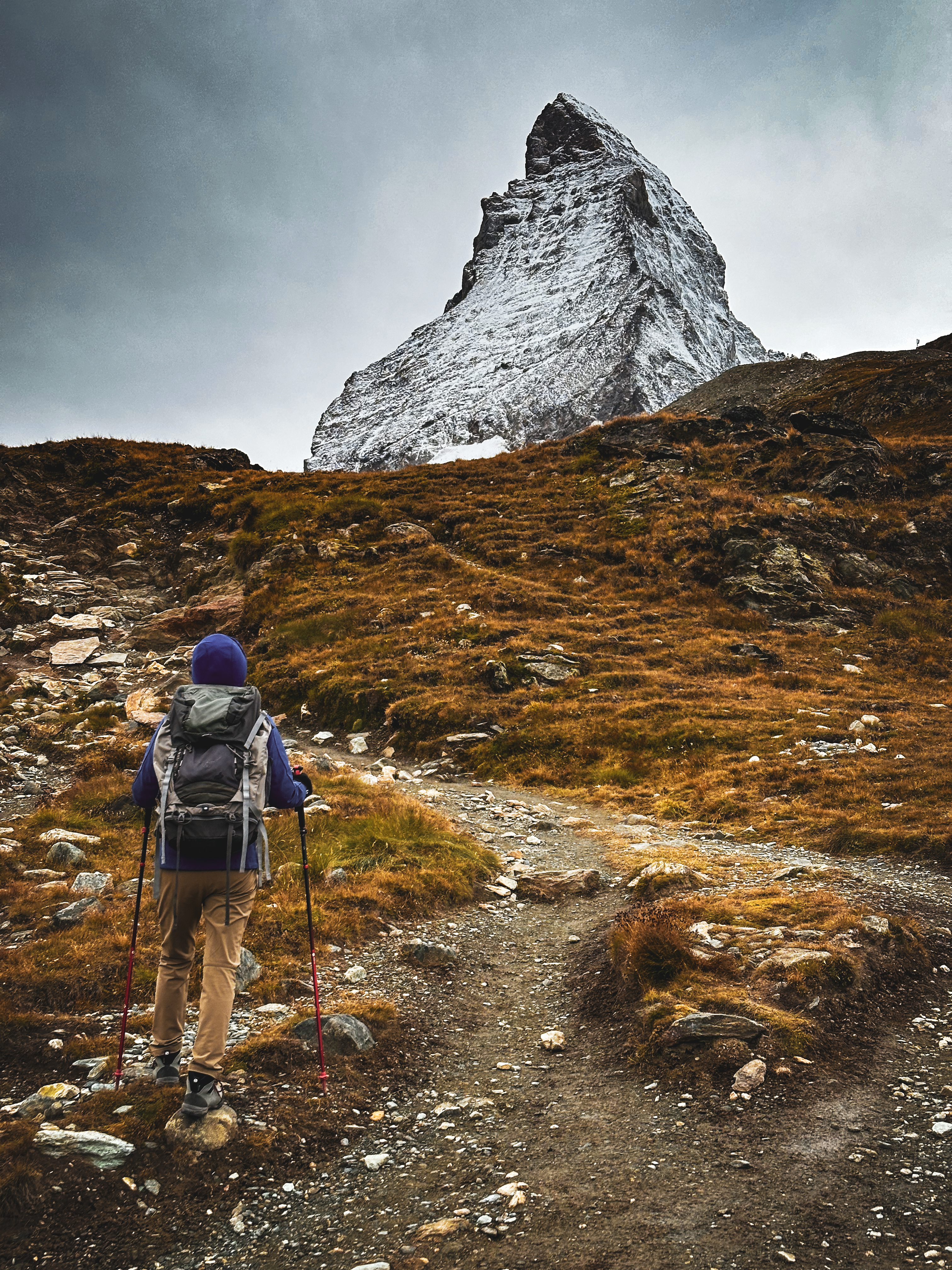 As I walked, the weather started to improve, with the sun peeking through the clouds. The warmth was a welcome change, and it made the walk much more enjoyable. Along the way, I got to see the Matterhorn from a different angle, which was breathtaking in its own right. Even though I’ve done this hike around four times already, it never gets old—it’s still one of my absolute favorite trails, and each time feels a little different depending on the weather and the views.