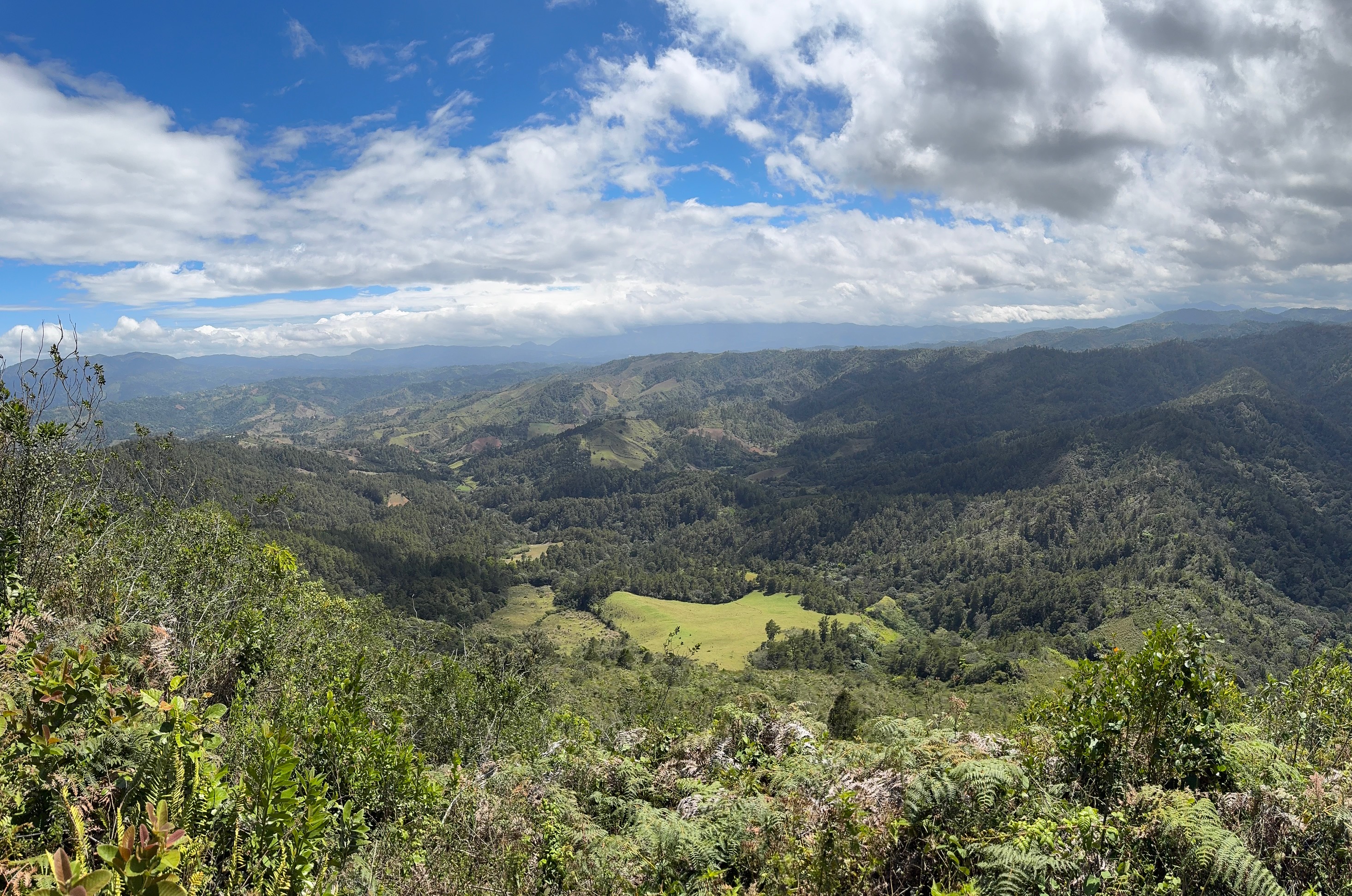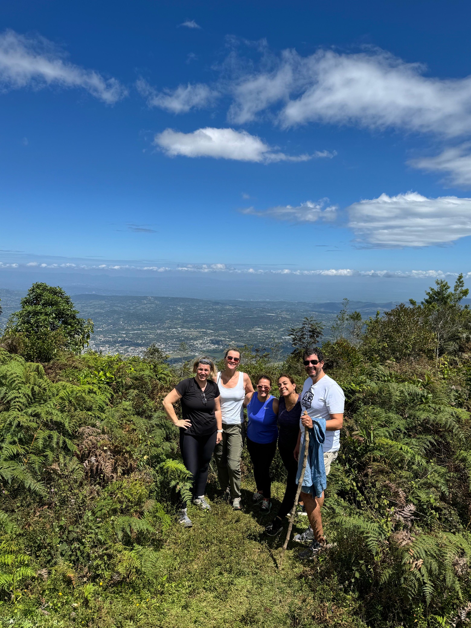 My friend Maja and I began hiking two years ago in the Dominican Republic, with the Mogote trail as our first route in the region. Guillermo, Larissa, and Georgina joined us for a six-hour ascent and descent, each involving roughly 950 meters of elevation gain. The path led through dense forest that provided essential shade.