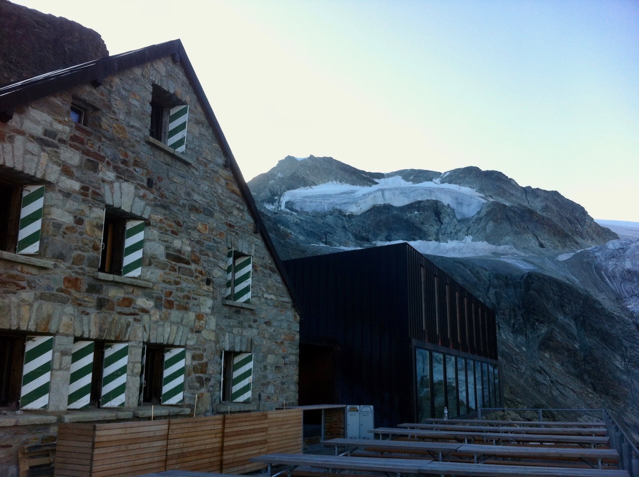 Cabane de Moiry still in the shadow