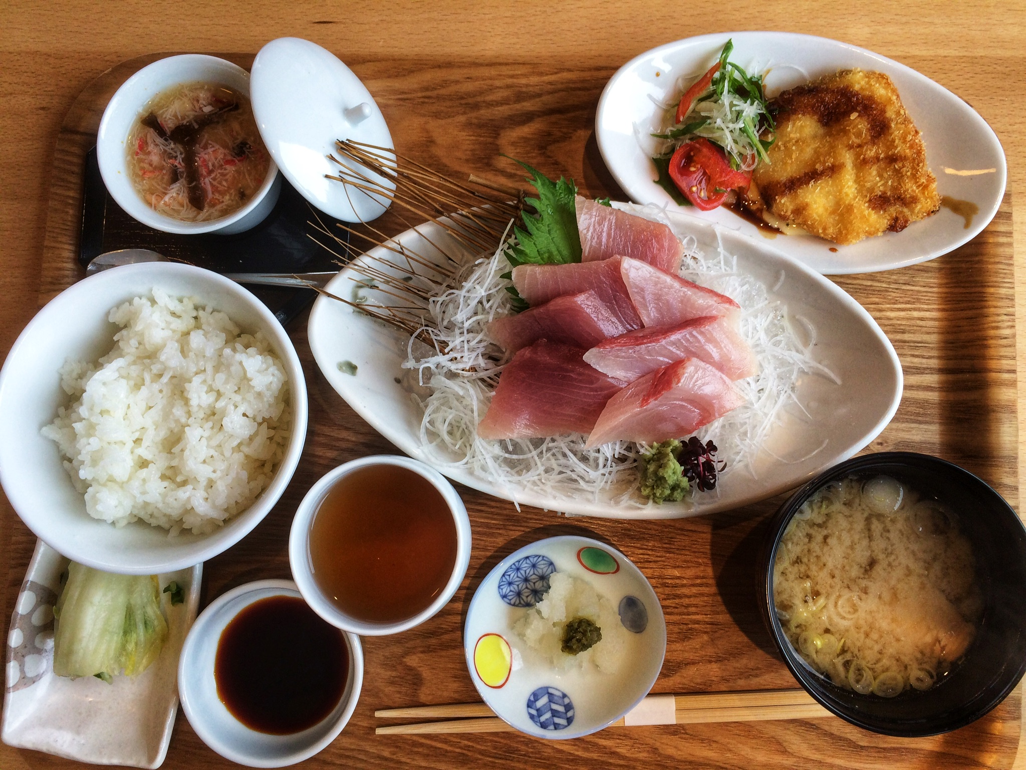 Being rather jet-lagged, Yasuko decided to make it a moderate-but-constant activity day. Starting with a nice meal at the Mikuni Ootoku restaurant next to Oshima.