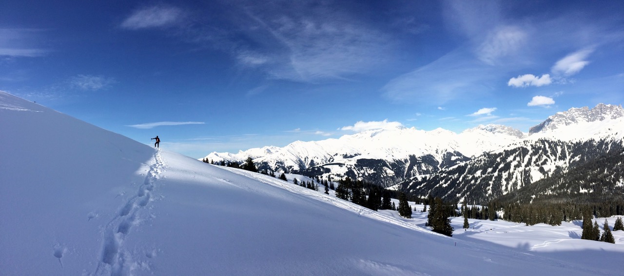 Alp Valpun (1’800 m); Distance: 10km; 400m ascent /descent; 3.5 hours of walking Another sunny day with blue sky in pretty Prättigau.