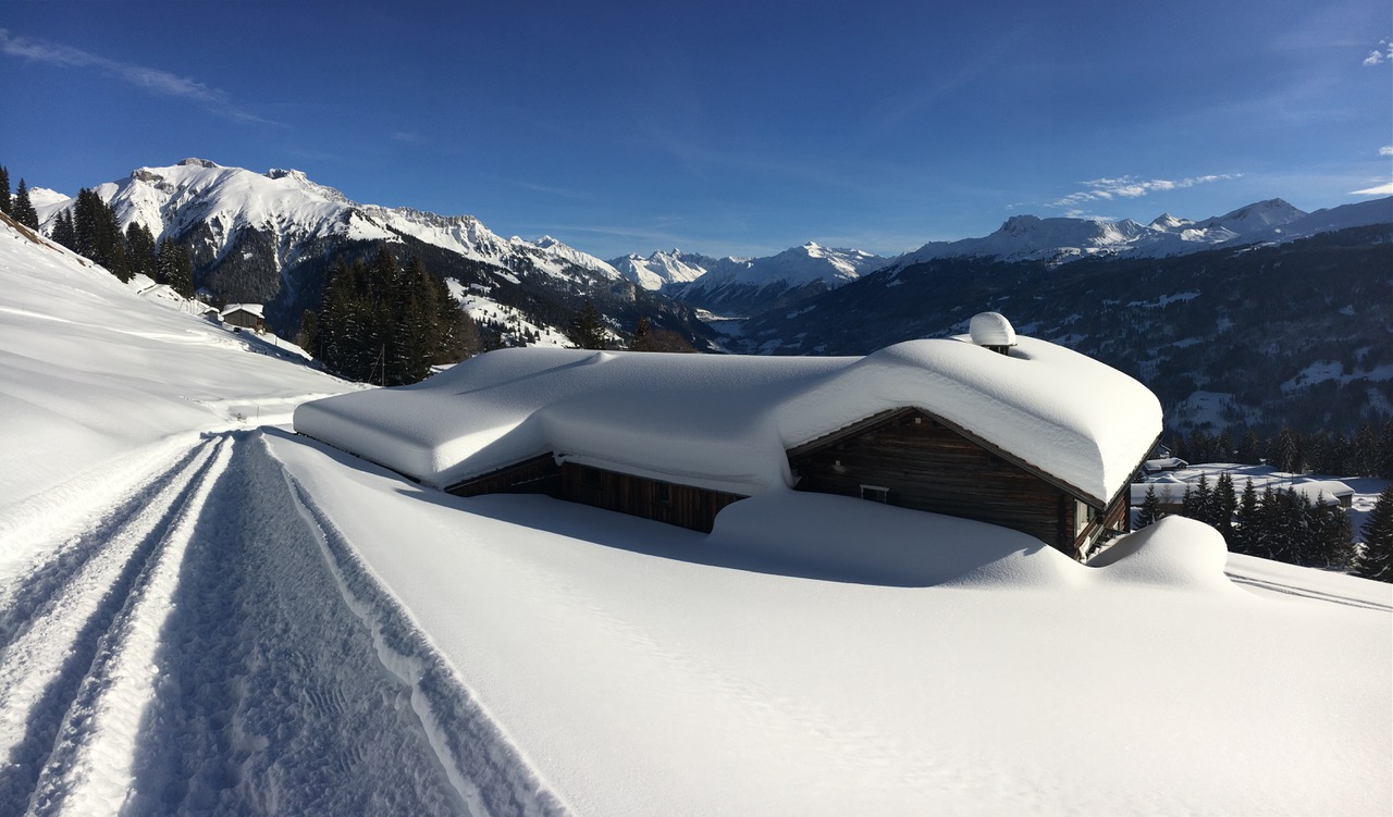 In Pany, we were welcomed by the blue sky and heavy snow. The record high snow – for early January – blocked the garage, entrance door and with it, the access to the snow shovel!